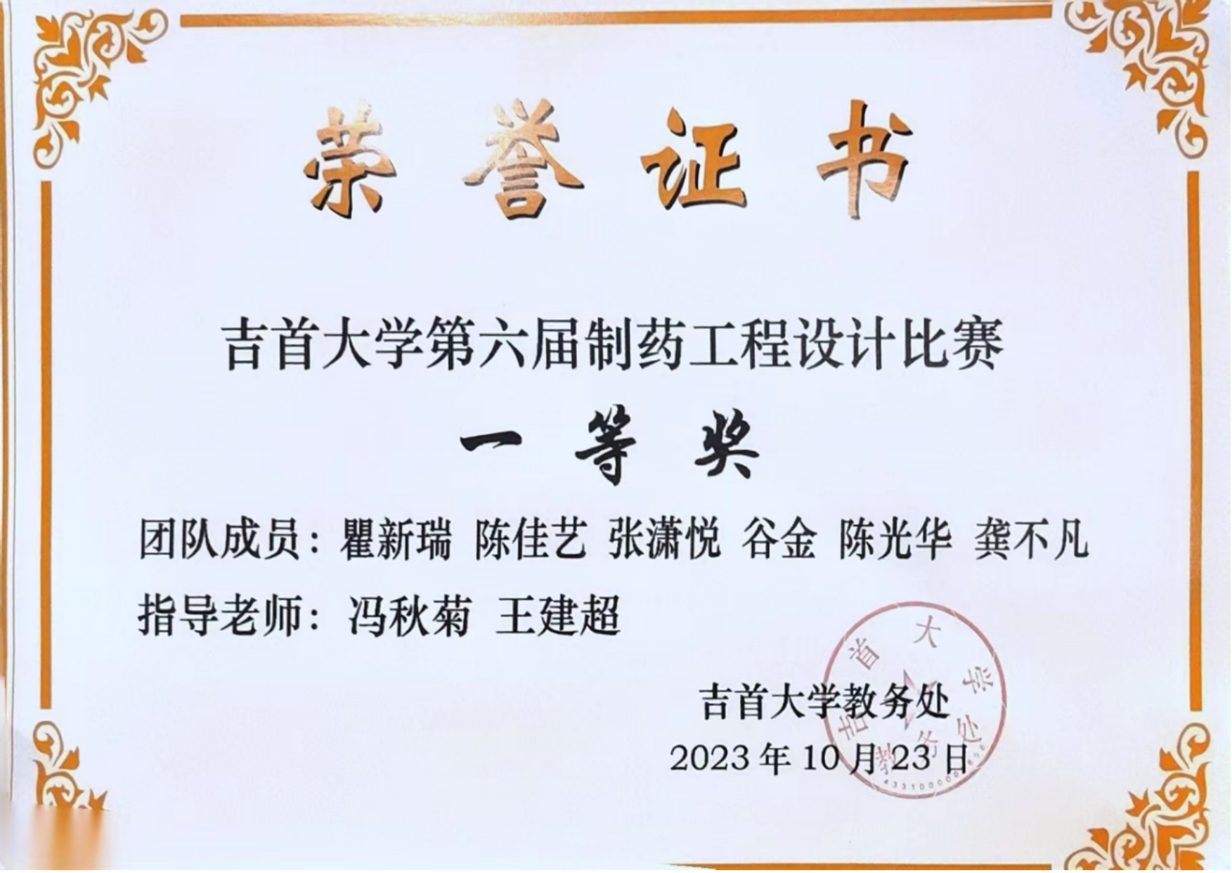 2023太阳集团tyc33455第六届制药工程设计一等奖