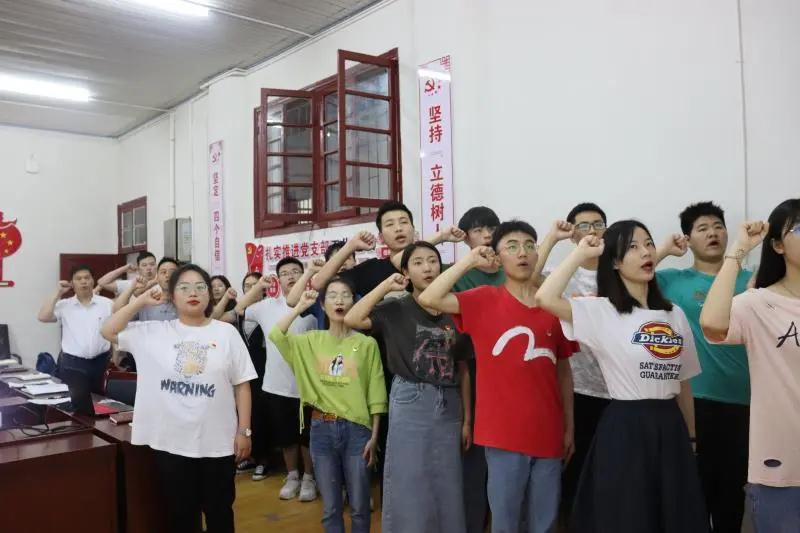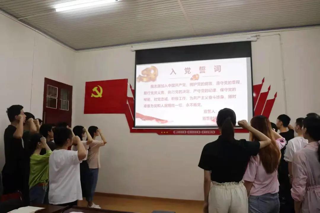 王江生宣读了《关于太阳集团tyc33455员工第一党支部党员发展的批复》和《关于太阳集团tyc33455员工第二党支部党员发展的批复》。随后,预备党员进行入党宣誓仪式,其余党员重温入党誓词。宣誓仪式由石静咏诗领誓。
