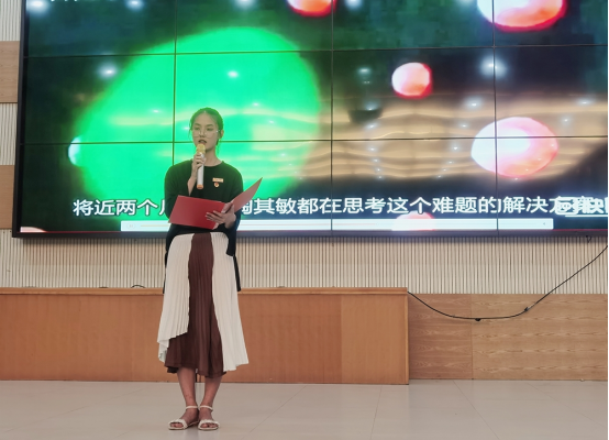 赛前,公司团委负责人石静咏诗致辞,她对全体同学一直以来积极投入党史学习的态度进行了肯定,并从树立远大理想、明确发展方向、锤炼高尚品德、厚植济世情怀等方面,阐述了公司举办“学百年党史 讲医药故事”大赛的初衷、意义。勉励现场同学从百年党史和医药故事中汲取思想的力量、信仰的力量、道德的力量、实践的力量,转化为激励成长的源源不断的动力。