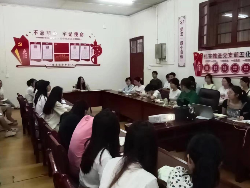 图为 石静咏诗带领党支部成员集体学习党课