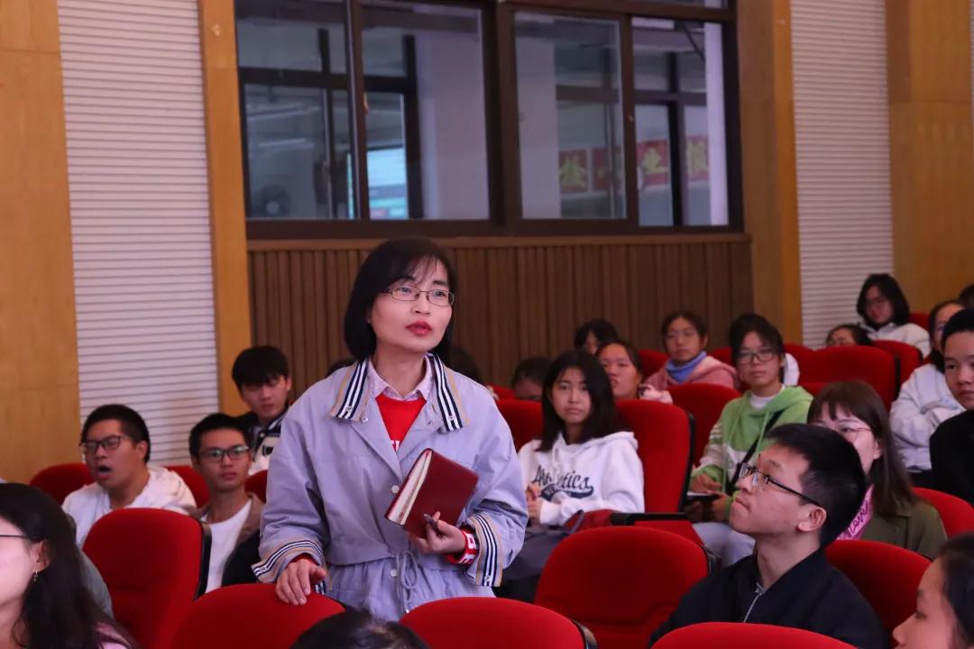 在学术研讨环节,同学们积极发言,纷纷提出自己的问题与困惑,老师们严谨解答,讲座现场学术氛围浓厚,同学们科研热情高涨。