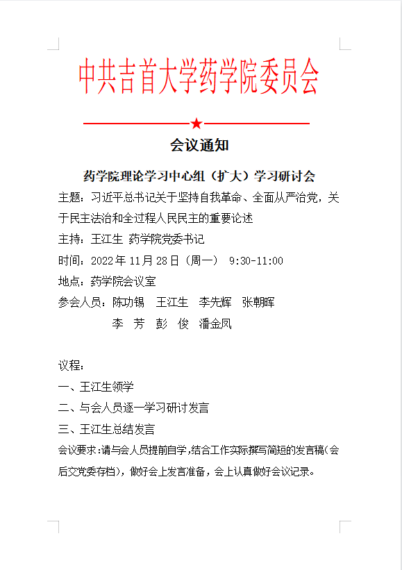 太阳集团tyc33455理论学习中心组(扩大)学习研讨会-11月