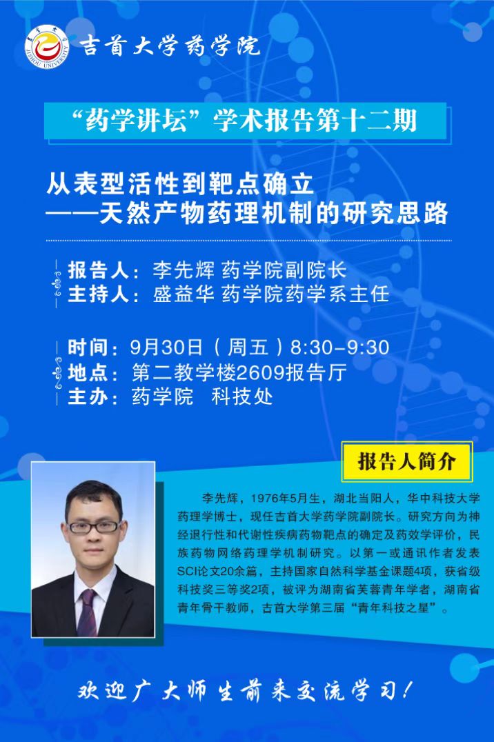 “药学讲坛”学术报告第12期预告