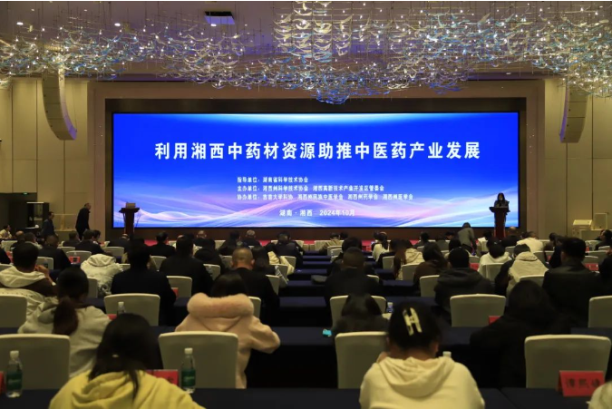 本网讯:10月23日,2024年湘西中药材资源利用助推中医药产业发展活动,在湘西土家族苗族自治州吉首市举行。湘西州委常委、州委政法委书记、州中医药和生物医药产业链副链长彭延敏出席并致辞,省科协二级巡视员喻泽红出席活动。湘西州直相关单位、县市科协、园区科协,县市、湘西高新区中医药和生物医药产业领域企业,州科协所属学会、高校科协的科技工作者代表参加,公司创院经理陈功锡教授、叶凡博士、姚姝凤博士等及员工代表参加了活动。