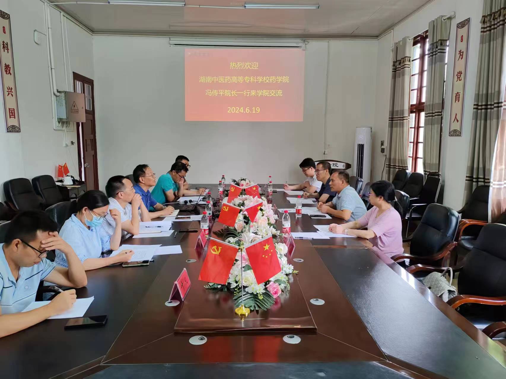 本网讯(通讯员 江心迪)为加强高校之间的合作与交流,6月19日中午,湖南中医药高等专科公司太阳集团tyc33455冯传平经理一行来到太阳集团tyc33455,并在太阳集团tyc33455会议室召开了交流会,太阳集团tyc33455经理陈功锡,副经理李先辉教授、张朝晖教授,中药系主任向娟副教授,教研室主任李思迪副教授和叶凡博士参会。