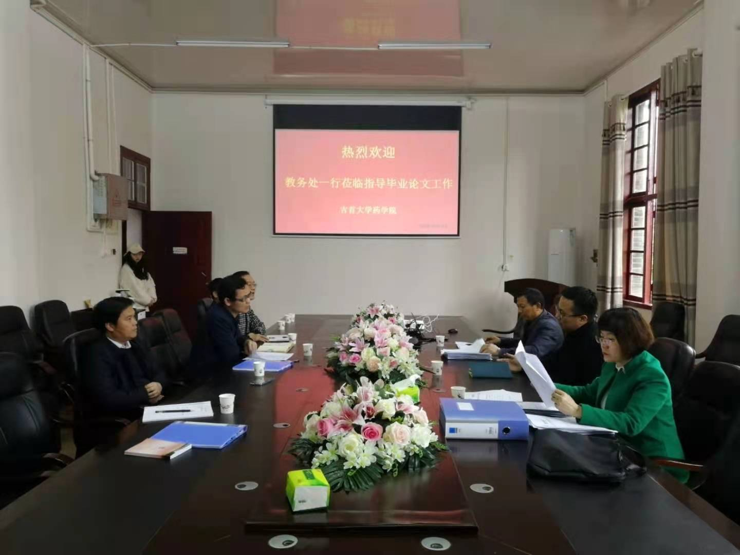 本网讯(通讯员单莉)2021年4月21日下午,教务处副处长罗家顺、督导组专家刘昕、教务处实践科科长袁东华老师莅临太阳集团tyc33455检查指导毕业论文(设计)工作,公司经理陈功锡、公司党委副书记王江生、副经理李先辉、教务办李贵、彭英福等参加了本次检查,并进行了座谈。
