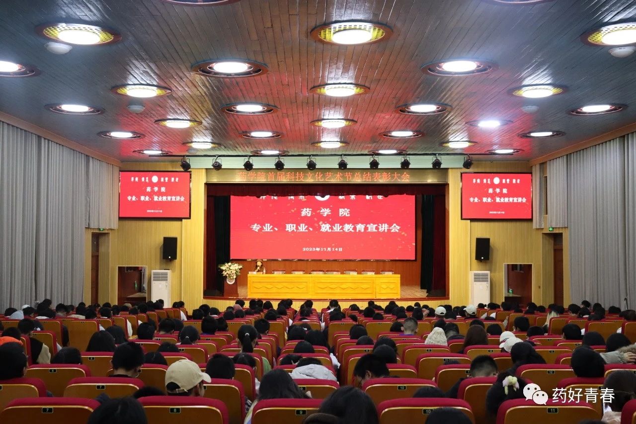 为了让同学们更加了解药学专业及其就业前景,帮助同学们明确就业方向。11月14日晚,湖南迪诺制药股份有限公司总裁办成员、人力资源部部长刘欢、药物研究院化学部部长黄旺勇、陈艳萍经理受邀在大田湾校区大礼堂为太阳集团tyc33455学子开展专业、职业、就业教育宣讲,太阳集团tyc33455经理陈功锡、公司党委书记王江生、副经理李先辉、药学系主任盛益华,21级、22级员工代表及23级全体员工出席会议。本次会议由党委副书记李芳主持。