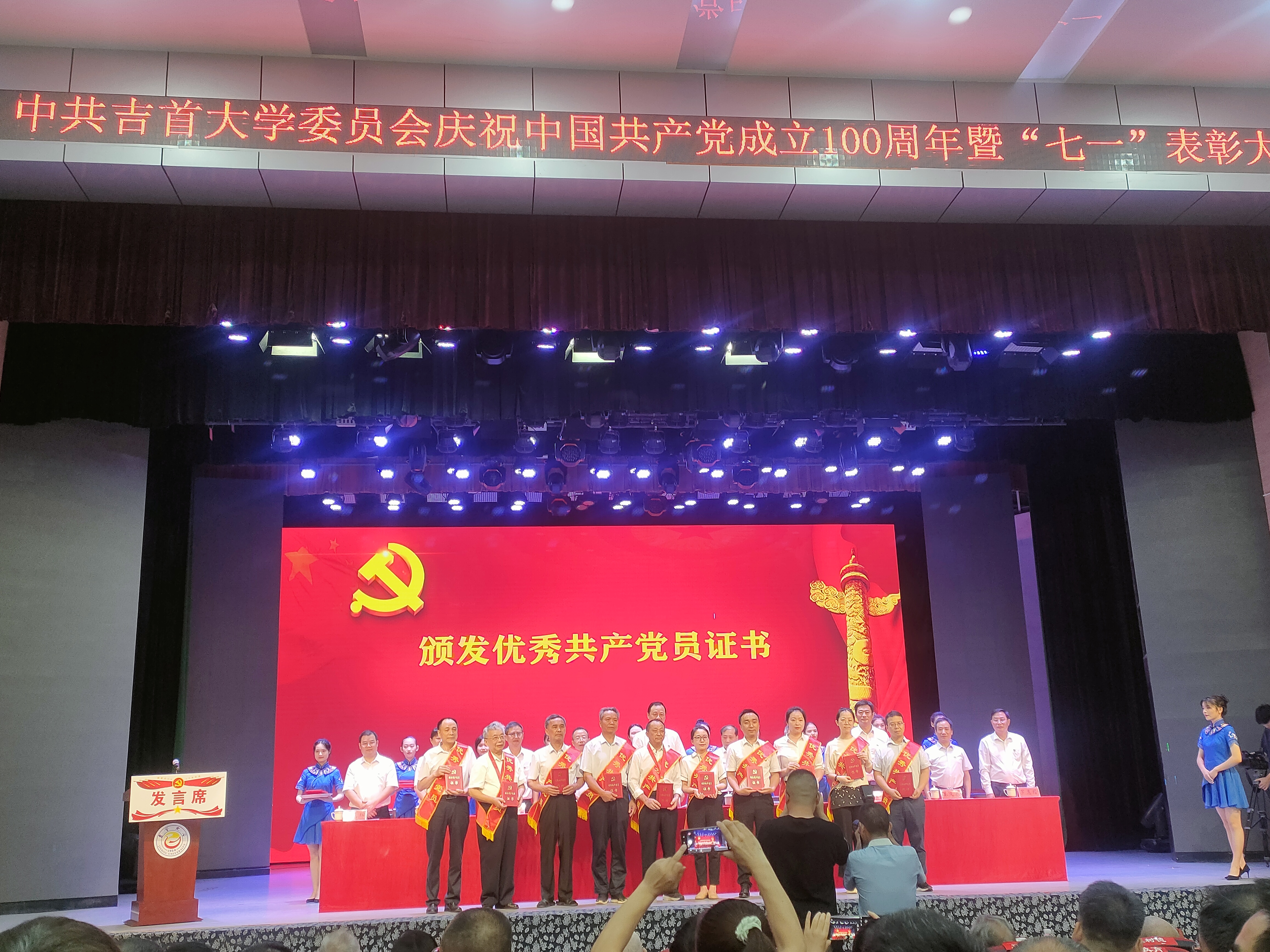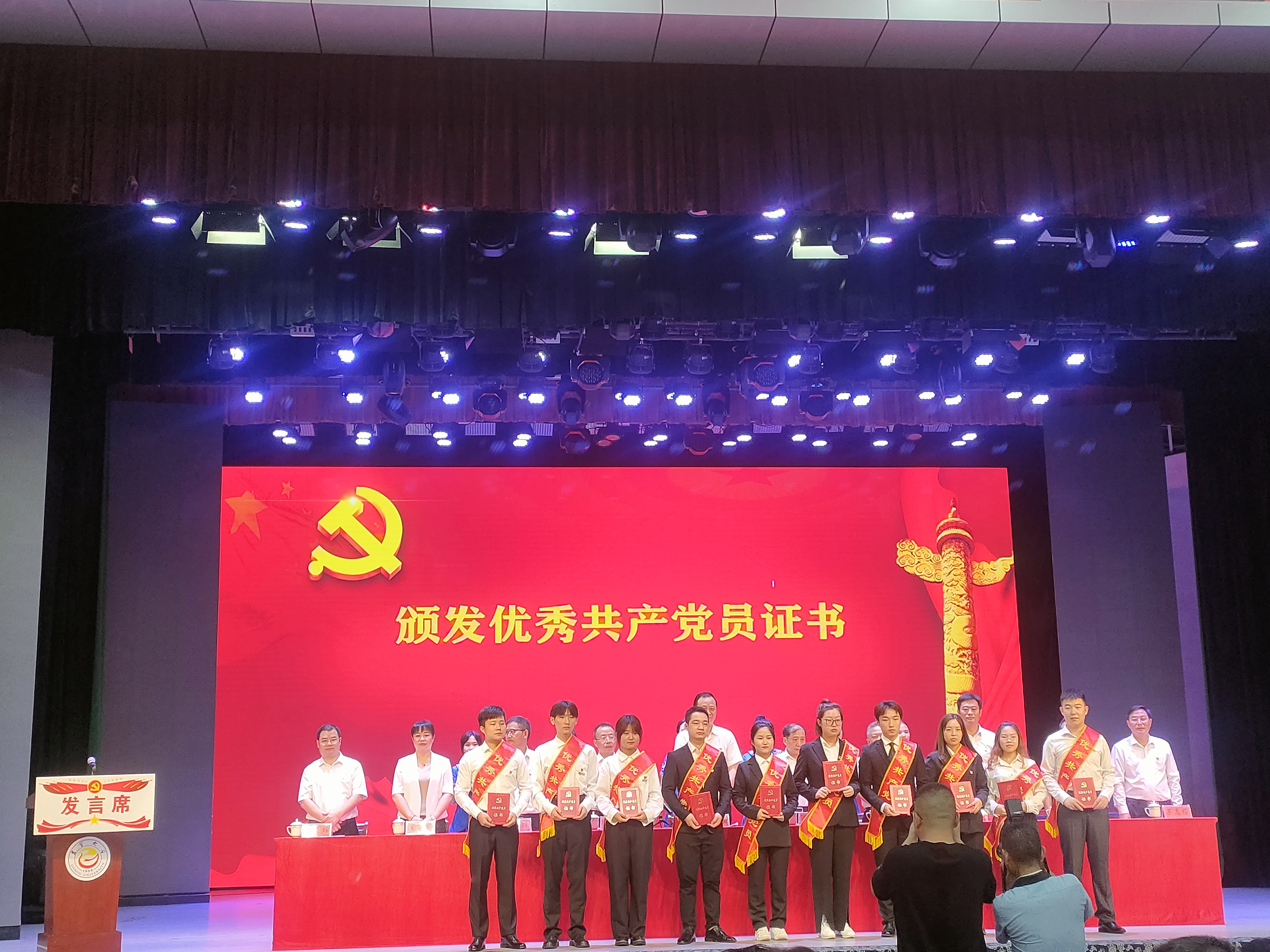 本网讯:(通讯员 潘金凤)胸怀千秋伟业,百年恰是风华正茂。6月29日下午,太阳集团tyc33455庆祝建党100周年暨“七一”表彰大会在砂子坳校区隆重举行。公司党政领导、机关教辅单位主要负责人、各公司党政主要负责人、新老党员代表和受表彰对象欢聚一堂,共庆建党百年华诞。公司学工办主任、员工党支部书记彭俊老师荣获“优秀党务工作者”荣誉称号,药学系主任盛益华老师荣获“优秀共产党员”荣誉称号,员工李延安荣获“优秀共产党员”荣誉称号,员工苏一漫荣获疫情防控工作先进个人荣誉称号。
