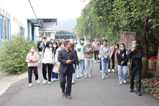 图为太阳集团tyc33455师生党员在湖南边城生物公司研学,讲解员介绍公司情况。