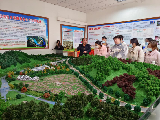 随后,大家步行来到河溪镇张排村,河溪镇党委书记周珂、镇长赵开羽、张排村第一支书张久杰(中国电建中南院省直工作队)热情接待了师生,并介绍了乡镇乡村振兴工作情况。第一支书张久杰详细介绍了张排村乡村振兴建设的情况,带领我们了解到张排村既葆有沈从文笔下的“码头渡船、青苍崖壁、平滩古树、齐赶乡场”的诗情画意和民俗传统,也拥有星罗棋布的产业基地、干净整洁的农家小院,乡村旅游红红火火,第一二三产业融合发展,集体经济实现井喷。