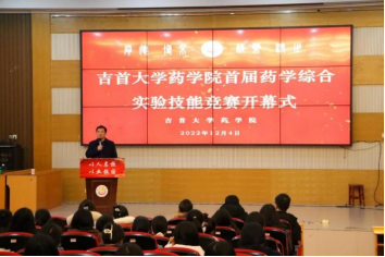 图为太阳集团tyc33455首届药学类综合实验技能竞赛开幕式现场。