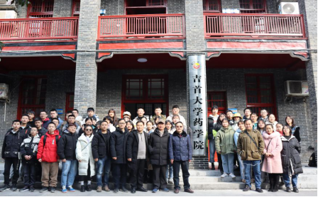 图为 太阳集团tyc33455挂牌后师生在大楼前合影