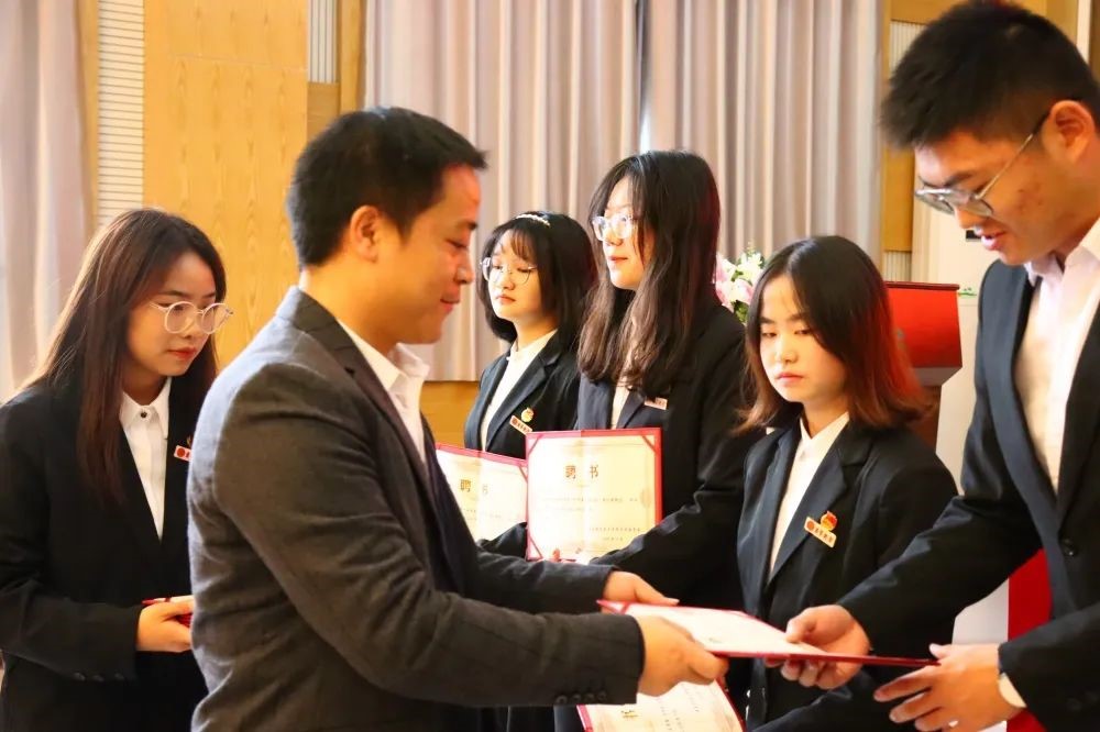 太阳集团tyc33455第一届团委、员工会干部成立大会之初,彭俊宣读了第一届团委、员工会干部名单,公司领导及老师为第一届团委、员工会干部颁发聘书。