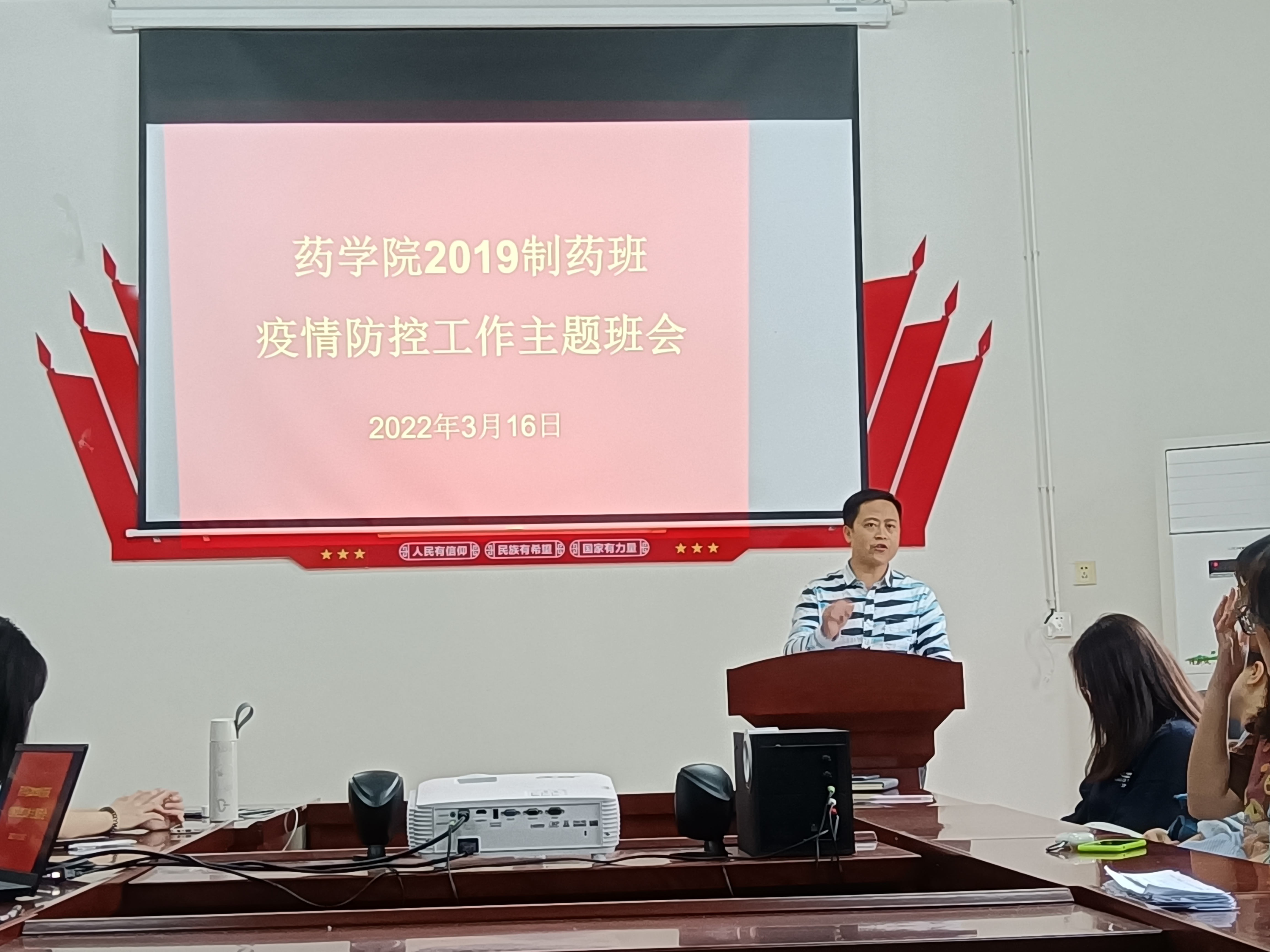 本网讯(通讯员 刘涵哲)为了强调公司疫情防控政策的必要性,并对细节工作做出安排。2022年3月16日,太阳集团tyc3345519制药班于药公司党员活动室召开了疫情防控工作主题班会。19制药班班主任彭俊老师以及19制药班全体同学参加会议。会议由彭俊老师主持。