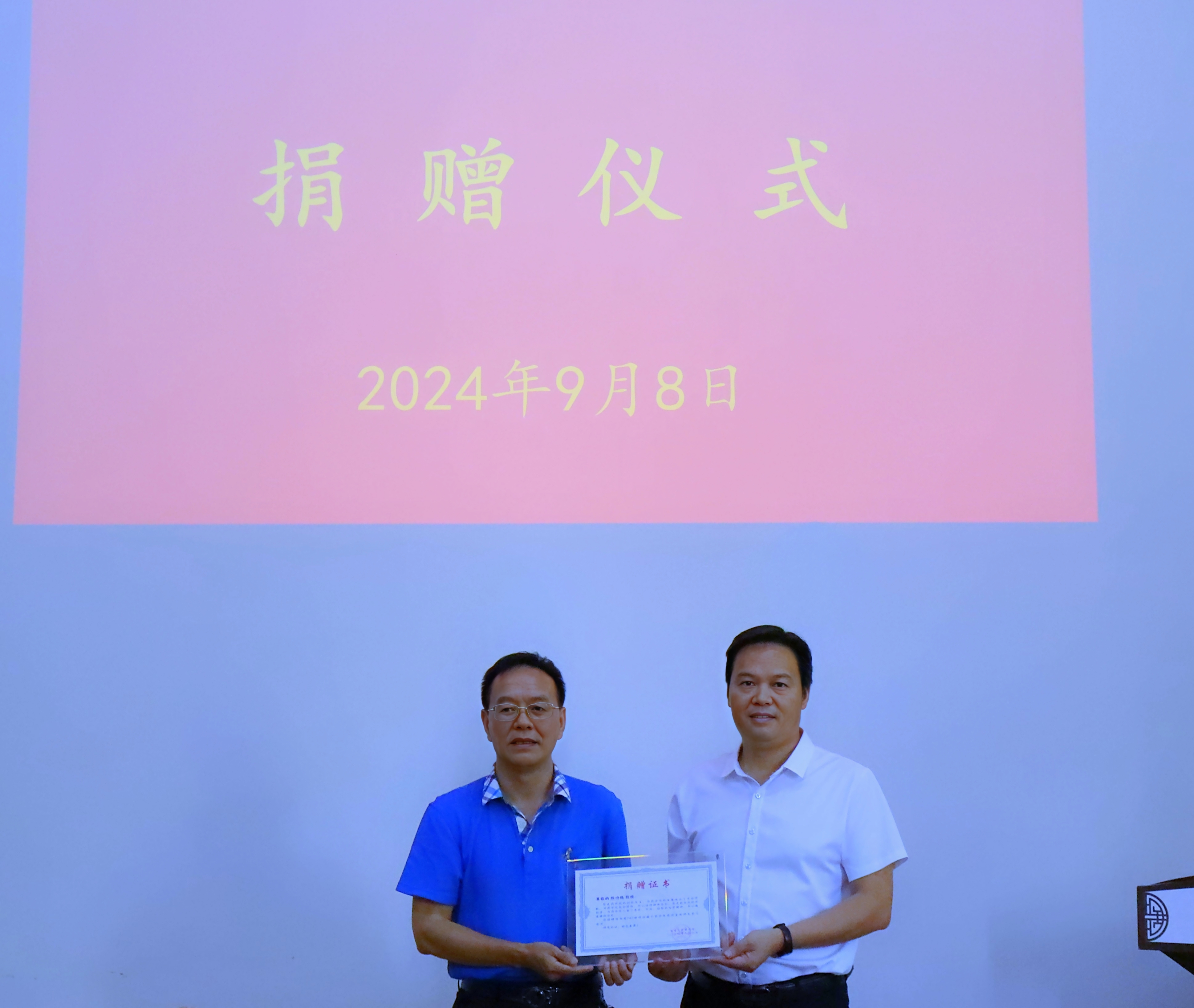 会上还举行了捐赠仪式。陈功锡教授为太阳集团tyc33455捐赠首批(教育、文化、科普)书籍767册/种(每种1册),将收藏于太阳集团tyc33455图书室供师生学习使用。王江生为陈功锡教授颁发捐赠证书。捐赠词这样写到“陈功锡教授是太阳集团tyc33455的创院经理,为太阳集团tyc33455的发展做出了突出贡献,对太阳集团tyc33455饱含深情,书以传情绵绵悠长;陈功锡教授是太阳集团tyc33455的开拓者,为太阳集团tyc33455人缔造了务实、开放、创新的宝贵精神,书以载道精神传承。”