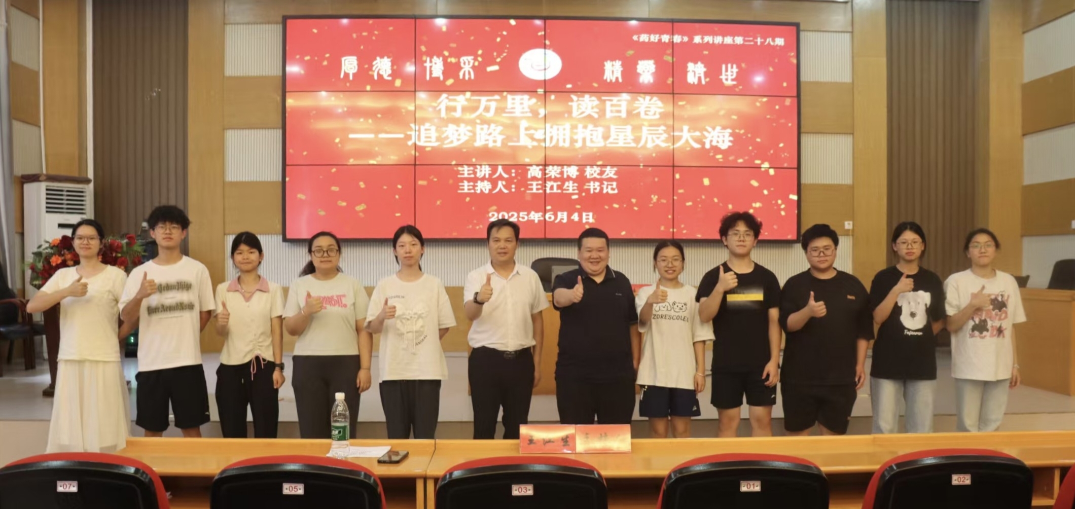 高荣博工作经历丰富,当过记者、警察、大学教师,参加援疆、驻村扶贫、乡村振兴等工作,丰富的工作经历,练就了他过硬的综合素质和能力。他从分享阅读感受开讲,随后详略得当的分享了自己的学习生涯和职业生涯的感悟,强调了社交的重要性并传授技巧,提出要敢于突破积极挑战,要在岗位中锻炼能力服务社会,引导同学们追梦途中要坚守读万卷书、行万里路的初心,在成长中拥抱星辰大海。