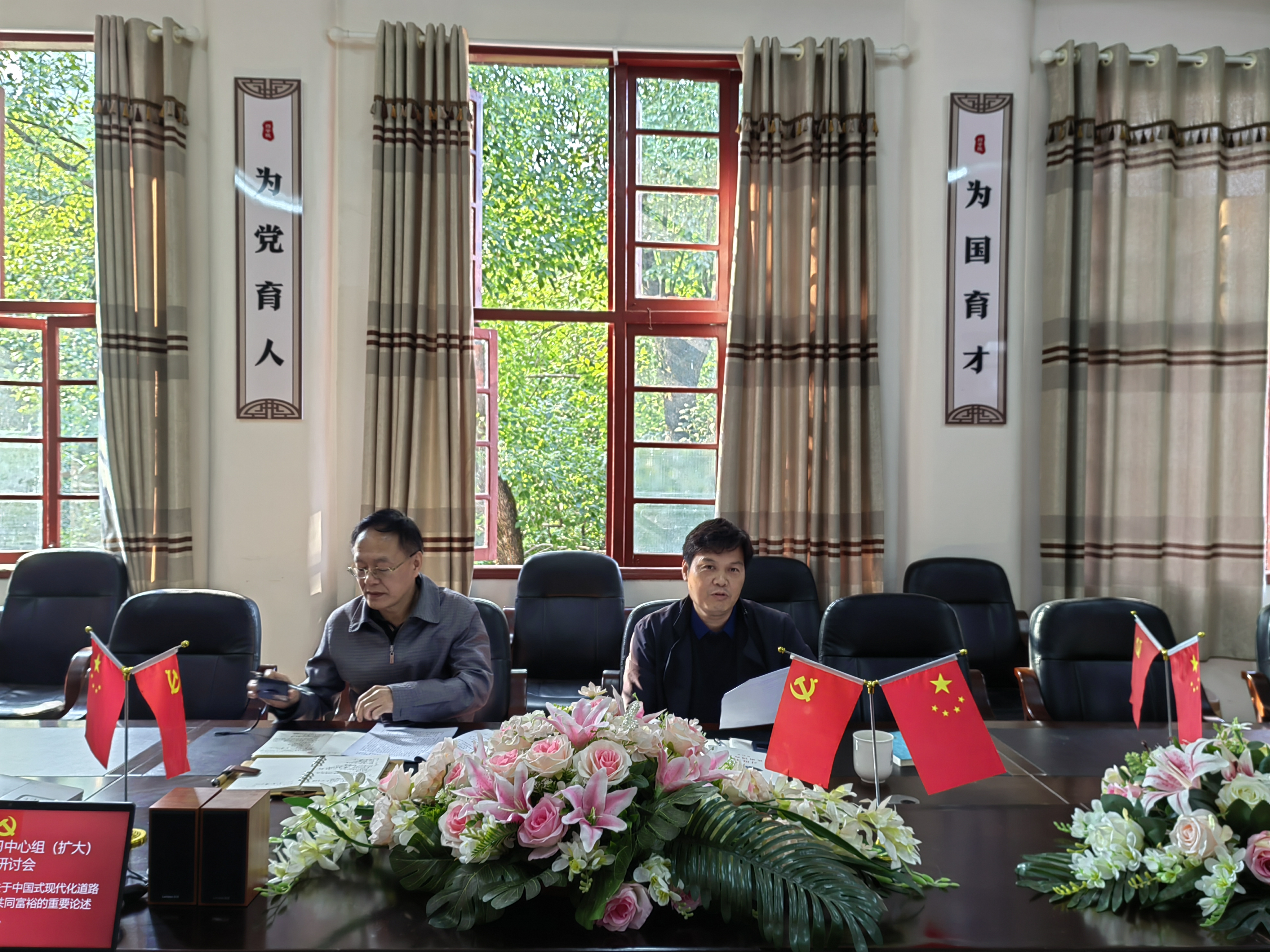 图为太阳集团tyc33455召开理论学习中心组(扩大)学习研讨会。