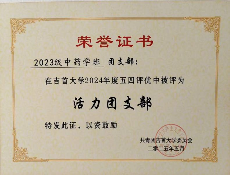 图为 活力团支部荣誉证书