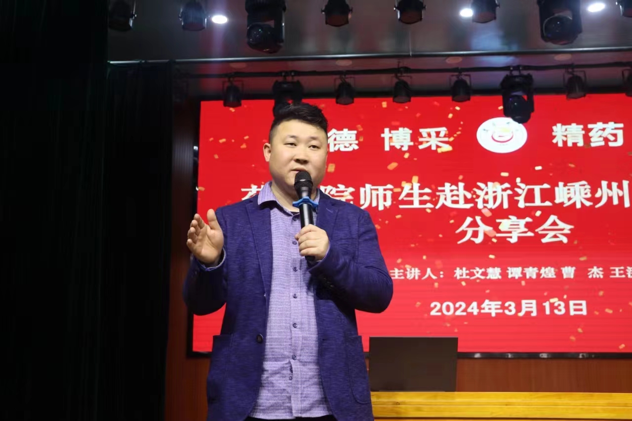 随后,参与分享的四位同学分别详细介绍了所走访的浙江长鸿生物材料有限公司、浙江昂利康制药股份有限公司、浙江细胞治疗集团有限公司、浙江湃肽生物股份有限公司等药企的企业概况、企业发展状况、企业文化、职工待遇以及企业职工生活起居场所等情况。并分别从安家补贴、购房补贴、租房补贴、岗位补贴等方面详细介绍了嵊州市关于引进人才的保障政策,还从住宿条件、公寓环境等方面介绍了嵊州市人才公寓的基本情况和配套设施。