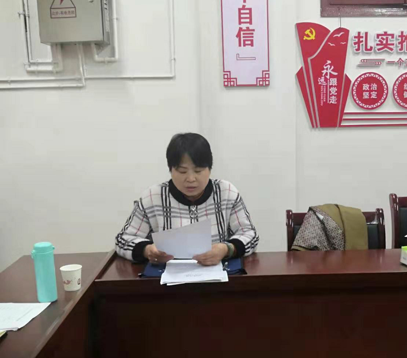 图为 党支部书记张晓蓉主持会议
