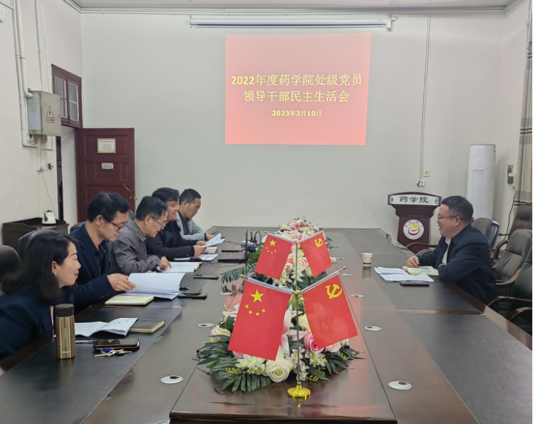 (通讯员 潘金凤)3月10日下午,太阳集团tyc334552022年度处级党员领导干部民主生活会在太阳集团tyc33455会议室举行,公司党委委员、副董事长周华忠到会指导,太阳集团tyc33455领导班子成员参加了会议。会议由药公司党委书记王江生主持。