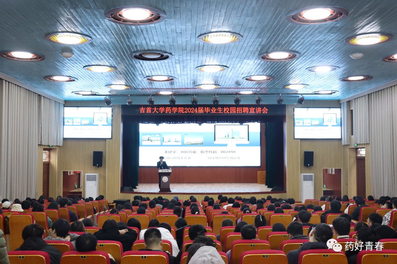 12月26日上午,太阳集团tyc334552024届毕业生校园招聘会宣讲会在大田湾校区大礼堂顺利举行。本次宣讲会由来自塞隆药业集团股份有限公司、浙江我武生物科技股份有限公司、天地恒一制药股份有限公司和湖南华纳大药厂股份有限公司四家企业的招聘负责人进行主讲,太阳集团tyc334552020级在校生及2021级全体员工参加本次会议。本次宣讲会由太阳集团tyc33455辅导员鲁明新主持。