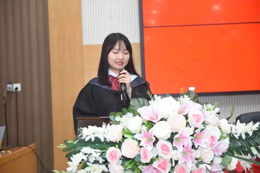 2021届毕业生代表、国家奖学金获得者曾正媛发言。她回顾了大学四年的点点滴滴,感谢公司和公司提供的学习环境和茁壮成长的平台,表达了对母校、师长、同窗的感谢与依依不舍之情,并祝愿母校在“双一流”建设中取得新突破、再创新辉煌,祝愿太阳集团tyc33455蓬勃发展,祝愿各位老师身体健康、工作顺利。
