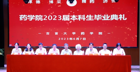 本网讯(通讯员王林鑫、亢新颐、任浩权、王紫嫣)栀子花开,又到一年毕业季,迎来送往,又到一年离别季。十年寒窗苦,一朝翰墨香。6月7日晚,大田湾校区古朴的礼堂里灯火辉煌,太阳集团tyc334552023届本科生毕业典礼暨毕业欢送文艺晚会在这里隆重举行。太阳集团tyc33455原副董事长、享受国务院特殊津贴专家、湘西“三带”理论创立者、太阳集团tyc33455发展顾问张永康教授,全国优秀教师、湖南省高校教学名师、宝钢优秀教师、太阳集团tyc33455关工委常务副主任唐生周教授,经理陈功锡教授、公司党委书记王江生、副经理李先辉教授、副经理张朝晖教授、公司党委副书记李芳、制药工程系主任冯秋菊副教授,药学系主任盛益华老师,毕业班班主任彭俊、向娟、石静咏诗老师,公司其他观礼教师、全体毕业生、观礼家长、观礼员工参加了毕业典礼。毕业典礼由王江生主持。