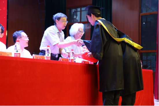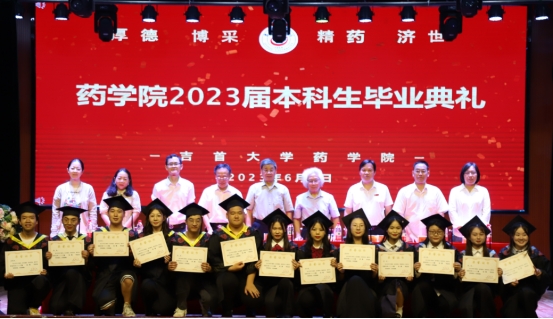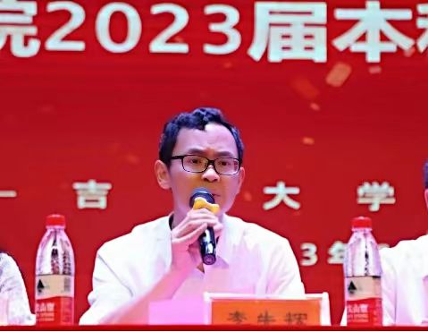 毕业生代表苏马正睿发言,他向公司和公司的老师、同学致以诚挚的感谢。并表示将铭记“以人名校,以人报国”的校训,践行“厚德、博采、精药、济世”的院训,励志做一名有理想、敢担当、能吃苦、肯奋斗的新时代好青年,为祖国医药卫生事业的发展而奋斗,为中华民族伟大复兴贡献出自己的一份力量。