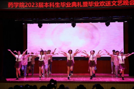毕业欢送文艺晚会在欢快的舞蹈中正式拉开序幕,充满欢快旋律的歌曲,青春活力的舞姿,将现场的气氛烘托到新的高度,低年级同学们以精彩的节目表达对学长学姐的美好祝福。