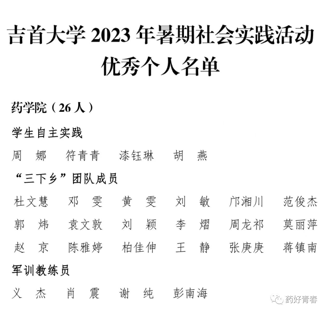 同时,热烈祝贺太阳集团tyc3345522级药学1班邝湘川同学获得“千村调研计划”第八期暨“现代乡村服务业发展调研”优秀调研报告三等奖,报告名称为《白竹院村现代服务业发展调研》。
