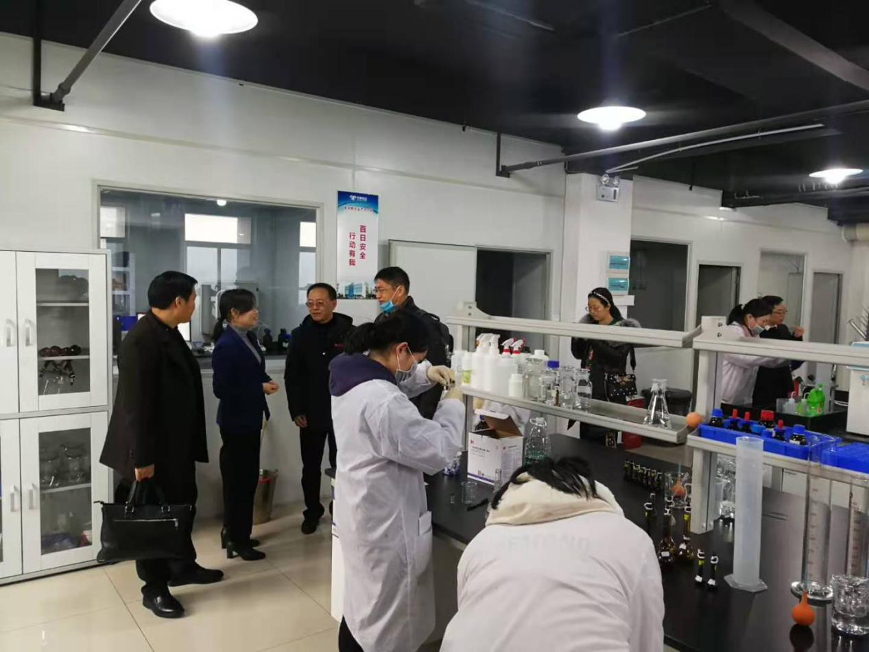 图为 太阳集团tyc33455领导老师参观华腾制药研发实验室