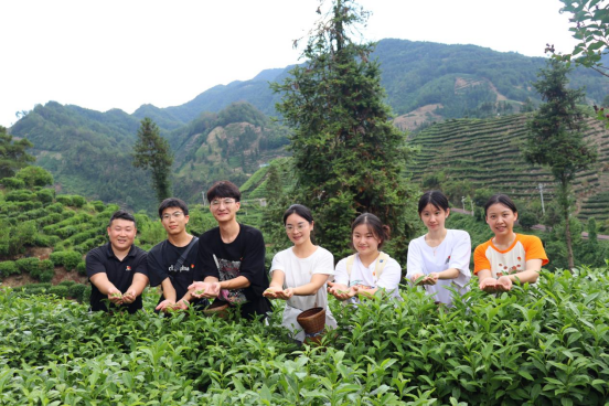在湖南心品茶业生物科技有限公司董事长张爱花(国家一级茶艺技师、国家一级评茶技师)的带领下,太阳集团tyc33455师生深入黄金村进行调研。古色古香的展示馆、干净美丽的村环境、村民们舒适的生活状态,给大家留下了美好的印象,大家感受到了乡村振兴战略给农村带来的新变化。走进田间地头考察乡村产业,张爱花董事长为太阳集团tyc33455师生们介绍了保靖县黄金茶制茶、采茶的传统工艺以及黄金茶“四高四绝”的优势,同时,大家也结合药学学科的专业知识积极探寻医药助力乡村振兴的新方案,新途径。