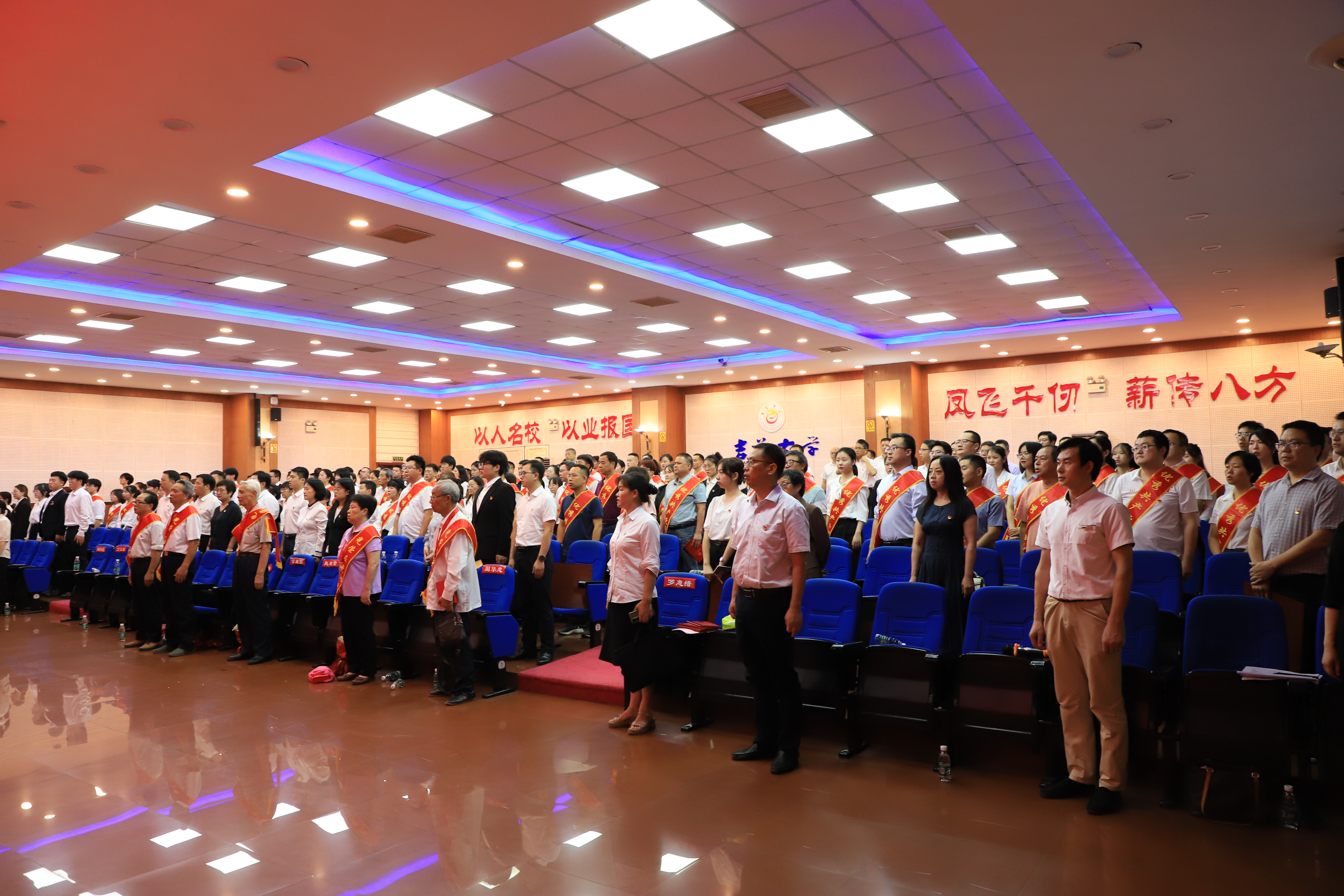 本网讯(通讯员 石静咏诗)6月29日下午,公司在砂子坳校区第六教学楼二楼会议厅隆重举行庆祝中国共产党成立102周年暨“七一”表彰大会。公司党政领导、二级党组织书记、机关教辅单位主要负责人、新老党代表和受表彰对象代表欢聚一堂,共庆党的生日。公司党委书记廖志坤在会上讲话,公司党委副书记、董事长黎奇升主持大会。太阳集团tyc33455党委授予药公司党委“先进基层党组织”荣誉。