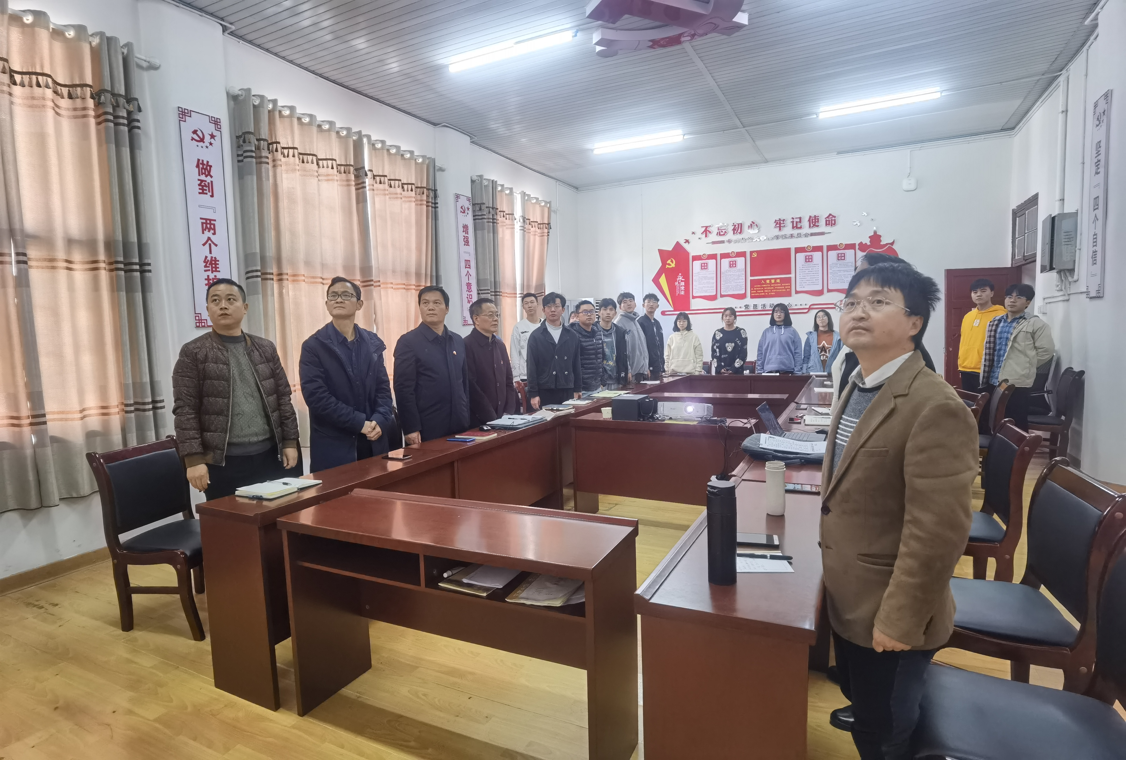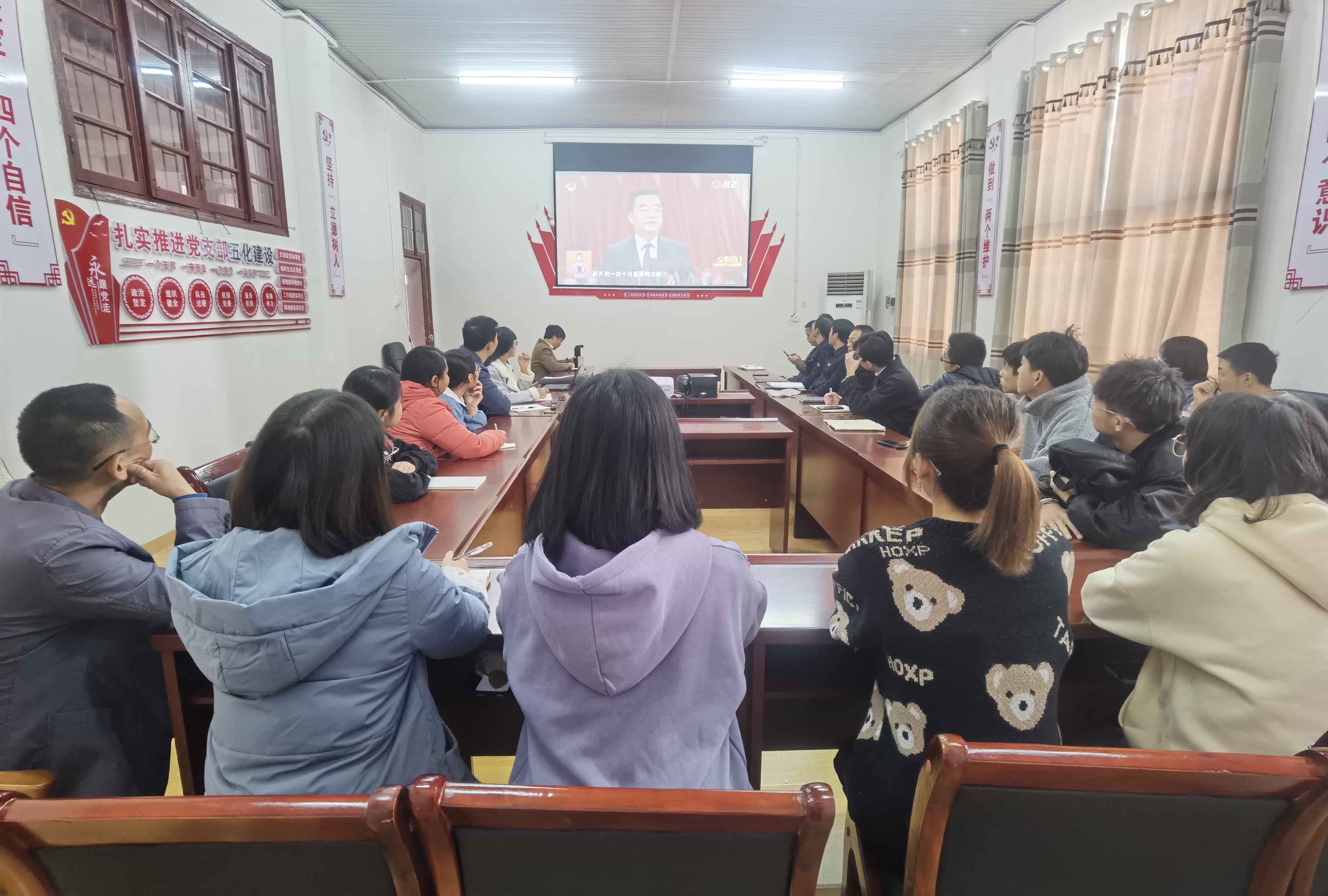 本网讯(石静咏诗)2021年11月25日上午,中国共产党湖南省第十二次代表大会在省人民会堂隆重开幕,湖南省委书记张庆伟代表第十一届省委作报告。药公司党委组织全体师生党员、员工党员代表于党员活动室集中收看了大会开幕会网络直播。药公司党政班子、各党支部书记等一同收看。