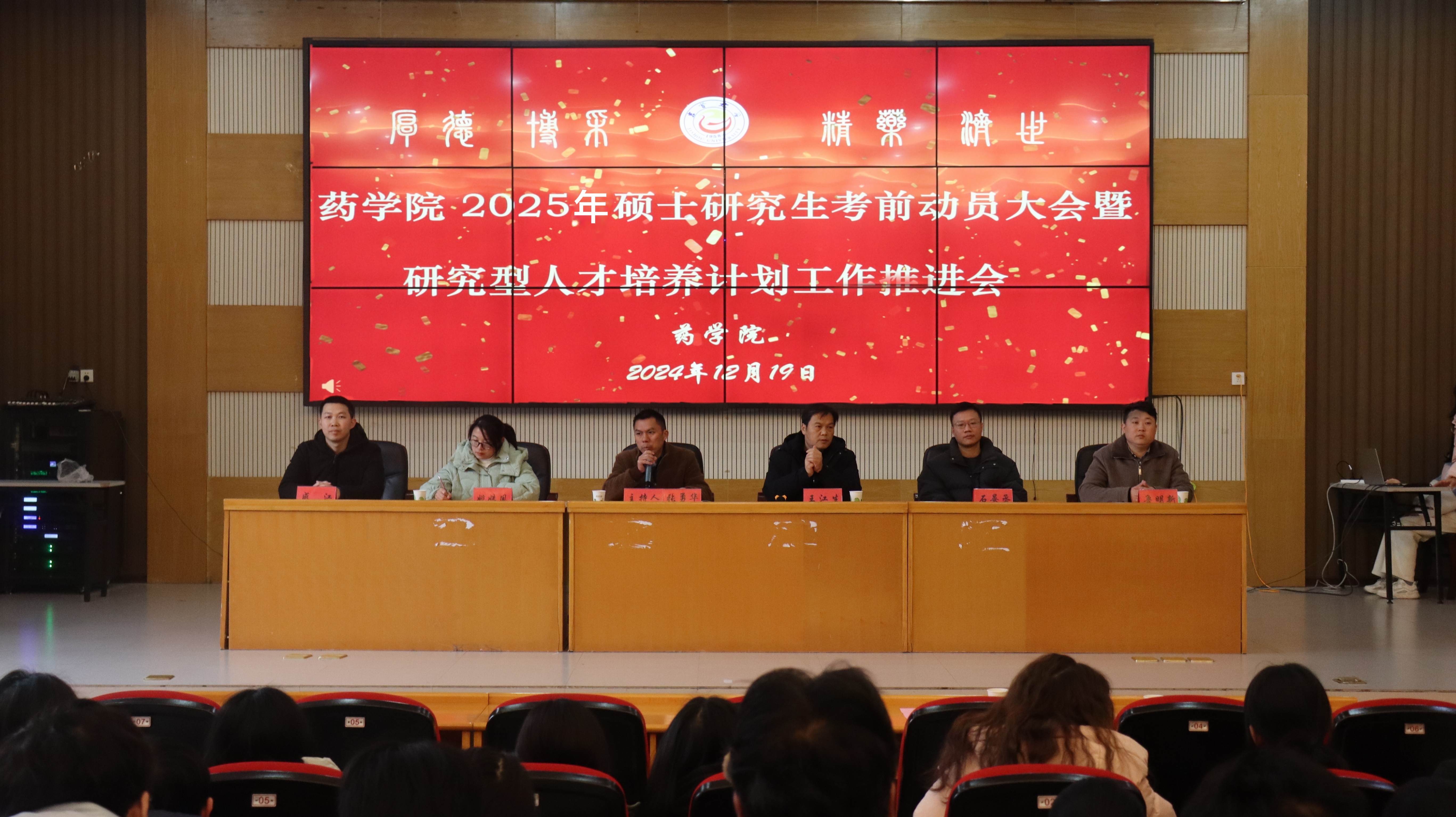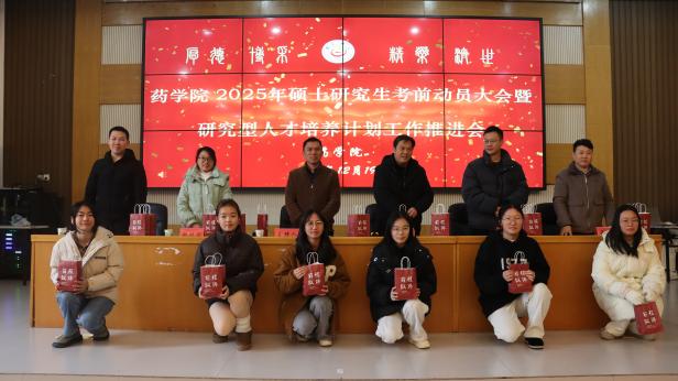 本网讯(通讯员 郭祥星、王芝、江心迪)2024年12月19日中午,太阳集团tyc334552025年硕士研究生考前动员大会暨研究型人才培养计划工作推进会在大田湾校区 2609学术报告厅举行。药公司党委书记王江生、党委副书记张勇华、2021级各班班主任及2025年硕士研究生参考员工出席本次会议。大会由张勇华主持。