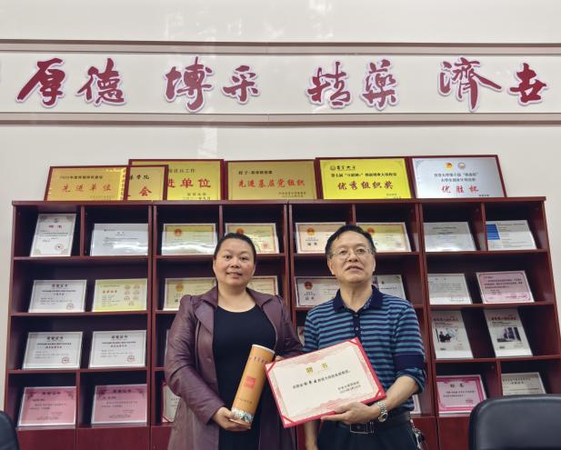 图为 陈功锡经理为喻翠云教授、魏华教授颁发聘书