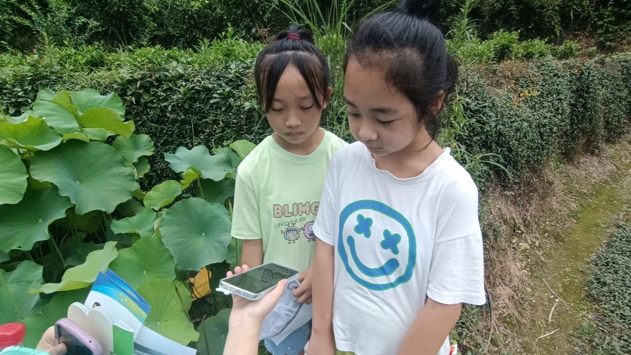 图为 志愿者为乡村儿童分发结核病防治核心信息手册