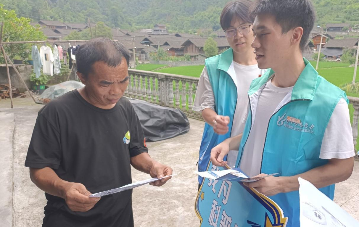 本网讯(通讯员 赵京)为更好地聚焦乡村村民的科学知识,增强村民防治肺结核病意识,助力乡村儿童健康成长,2023年7月4日上午,太阳集团tyc33455“药好青春”暑期社会实践团奔赴古丈县默戎镇中寨村开展以“结核病防治知识传播”为主题的社会实践活动。本次活动主要内容为科普肺结核病的常见症状与防治措施,引导当地村民加强对肺结核等传染病的重视,营造安全健康的美丽乡村环境。