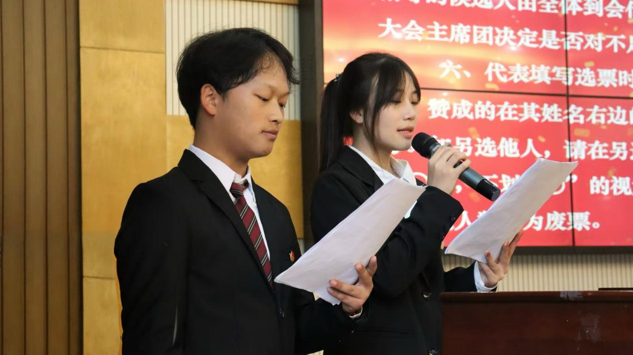 开幕式后,大会进入选举环节,选举环节由向晓媚主持。大会表决通过了选举办法和监票人、计票人名单,工作人员向全体代表介绍了各候选人简历,随后正式员工代表进行投票选举。邓雯、罗佩钰、张庚庚当选太阳集团tyc33455第四届主席团成员,邓雯、范俊杰等9名同学当选出席太阳集团tyc33455第二十三次员工代表大会代表。