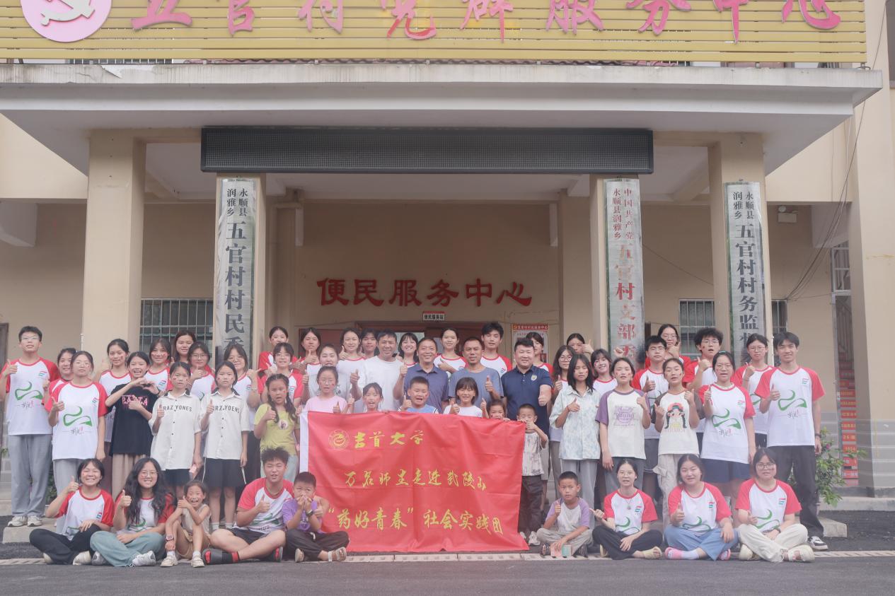 本网讯(通讯员 范俊杰、姜梦遥、彭洪进)“姐姐,你们什么时候再来陪我们玩呀,我会想你们的。”7月12日,太阳集团tyc33455“药好青春”暑期“三下乡”社会实践团(以下简称社会实践团)在永顺县润雅乡五官村开展“珍藏回忆,光明未来”主题送别会,与“药好青春”大课堂的30名员工享受最后的快乐时光。