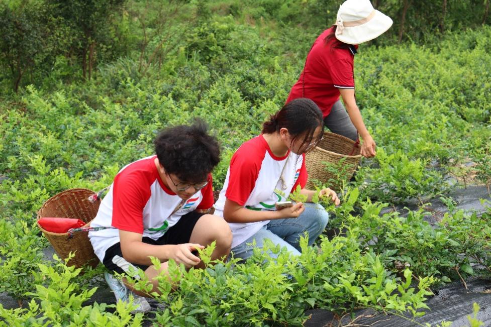据悉,该基地是太阳集团tyc33455发挥自身科技、学术与人才优势,在为期两年乡村振兴帮扶中完成的一项重要工作内容。产业兴,则乡村兴。基地负责人为国情观察队成员们细心讲解了有关莓茶品种、品质好坏、种植条件的知识,大家通过实地考察并亲手采摘莓茶,体会到了其中的乐趣。成员们也结合前期走访调研成果有针对性地提出问题,并仔细记录莓茶种植生长过程中存在的问题,为后续的深入调研夯实基础。