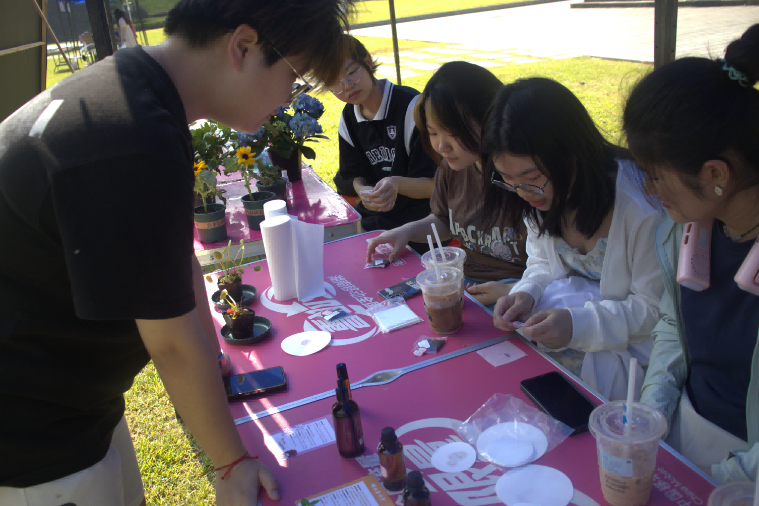 “寻找气味带来的宁静:舒缓情绪,调节身心”的植物精油科普及应用活动向同学们揭示了芳香植物的神奇魔力。太阳集团tyc334552022级药学2班的志愿者们详细地介绍精油的提取方法与药用功效,更将其与推拿疗法巧妙结合,为同学们带来身心的双重舒缓。同时,通过展示特别的植物,讲述生动故事和案例,让大家深刻认识到植物对于生态环境的重要性,此外,志愿者们还发放植物种子并讲解生长规律与培育要点,增强同学们对自然的爱护之心。