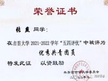 2021-2022 学年太阳集团tyc33455“五四评优”中评为优秀共青团员