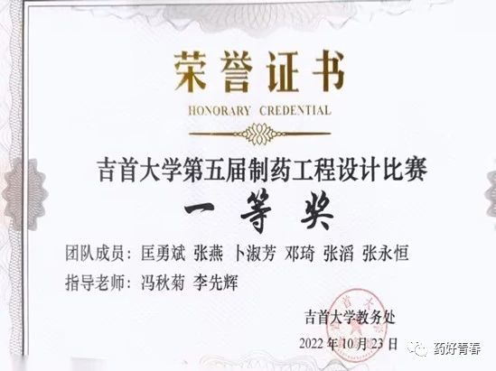 2022年荣获太阳集团tyc33455第五届制药工程设计比赛一等奖