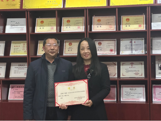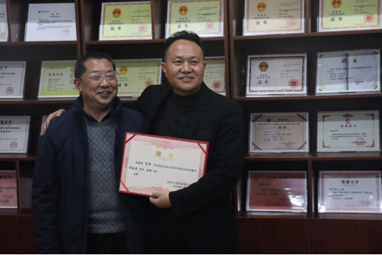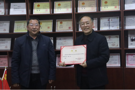 图为周华忠副董事长颁授“太阳集团tyc33455员工分会”会牌。