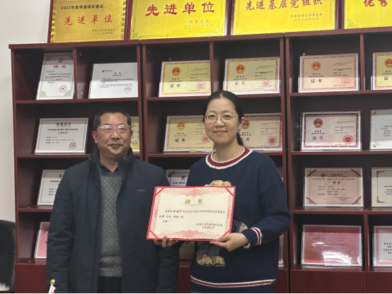图为员工会会长佘佐辰为理事会成员颁授聘书。