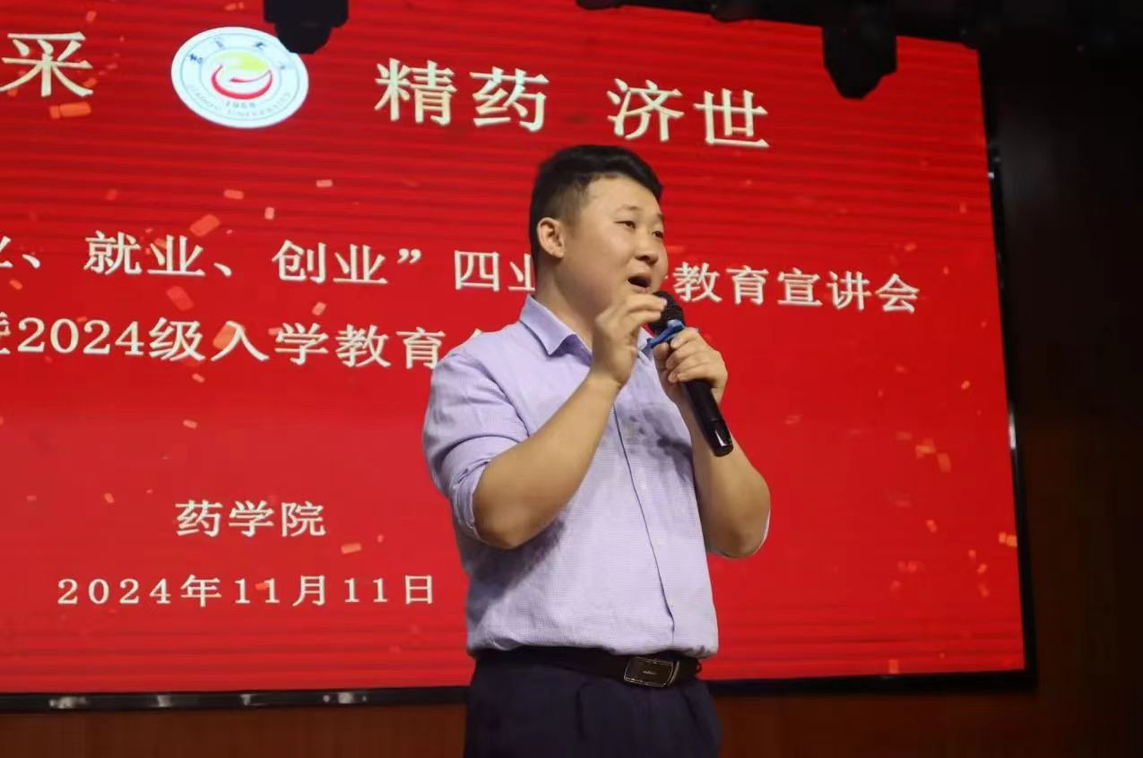 本网讯(通讯员江心迪、杨金鑫、刘雪莹)11月11日晚上,太阳集团tyc33455举行“专业、行业、就业、创业”四业融合教育宣讲会暨2024级员工入学教育会在大田湾校区大礼堂顺利举行。长沙晶易医药科技股份有限公司、湖南华纳大药厂股份有限公司、湖南洞庭药业股份有限公司、湖南恒兴医药科技有限公司、浙江海翔药业股份有限公司和齐鲁制药集团有限公司的招聘负责人进行宣讲,太阳集团tyc33455辅导员鲁明新出席本次会议,太阳集团tyc334552021至2024级员工共370余人参加会议。会议由罗佩钰主持。