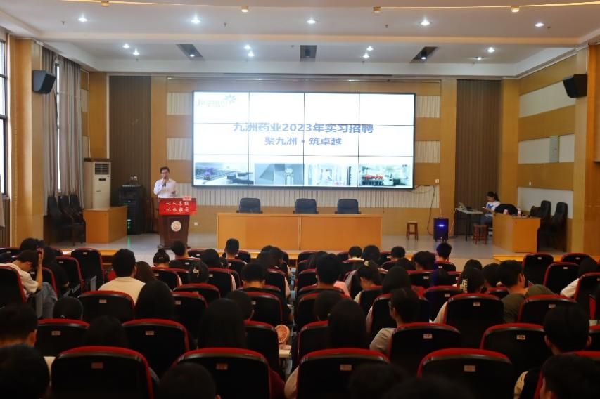 九洲药业徐奇作宣讲。首先,他就实习分享了自己的看法。之后,他从企业概况、职业发展、薪酬福利、2023年实习计划四个方面对九洲药业进行介绍,并详细的解答了同学们的疑问和困惑,为马上进入实习阶段的同学提供了一个良好的选择。最后,他希望同学们积极投递简历,进入企业深入了解行业发展。